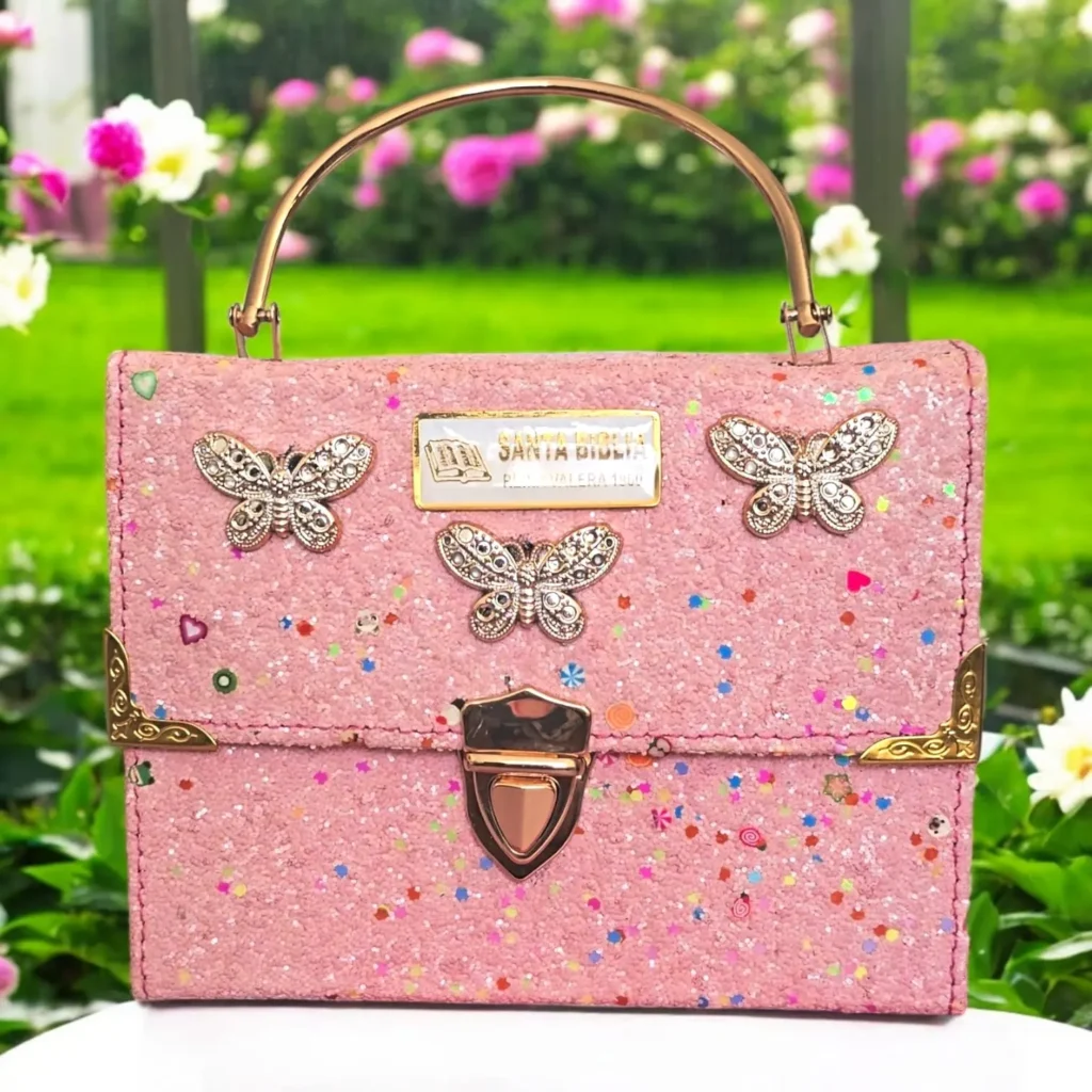 Biblia Personalizada Estilo Cartera Rosada – Letra Grande de 12 Puntos – Reina Valera 1960 – Tamaño Compacta – Español