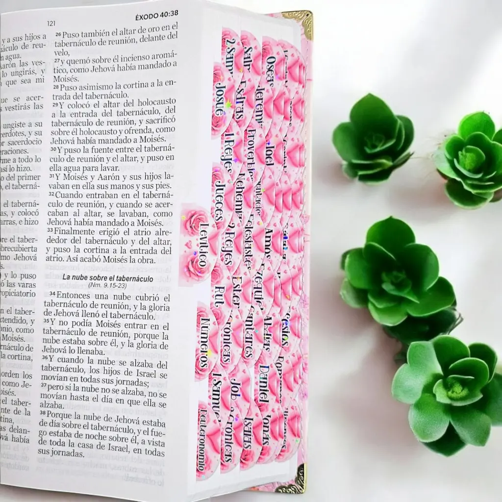 Descubre Biblias personalizadas únicas y hechas con amor. Personalizamos con nombre y nombre en piedrería, índices de pestañas, y dijes en el liston. Ideal para regalos cristianos, eventos especiales o tu tiempo devocional. Envíos a todo Estados Unidos y Puerto Rico.