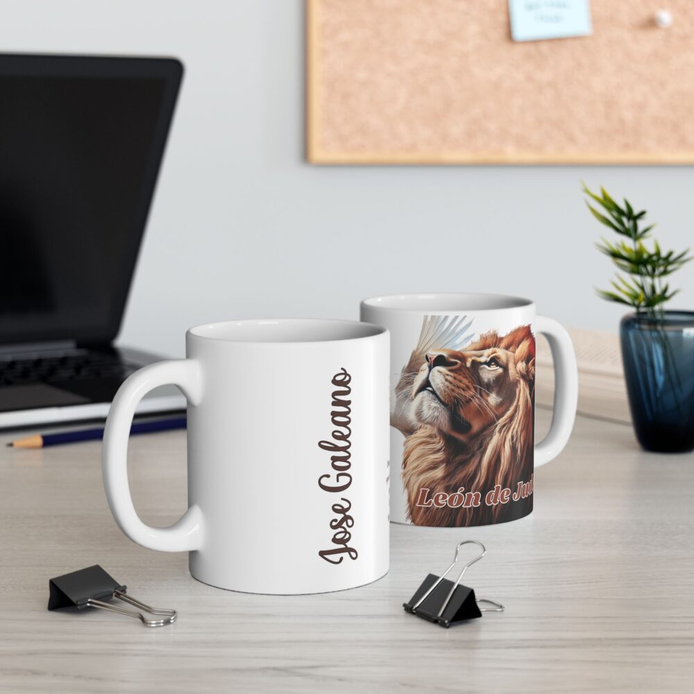 Taza de ceramica con versiculo con texto «León de Judá» de 11oz en este hermoso diseño puedes agregar tu nombre!